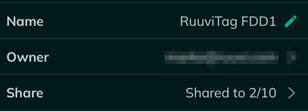 When you have claimed sensor ownership to your Ruuvi account, it is possible to share the sensor with friends or family. When sharing a sensor, the receiver will be notified by email. Note that the user will have access to all the sensor data, name, and background image.